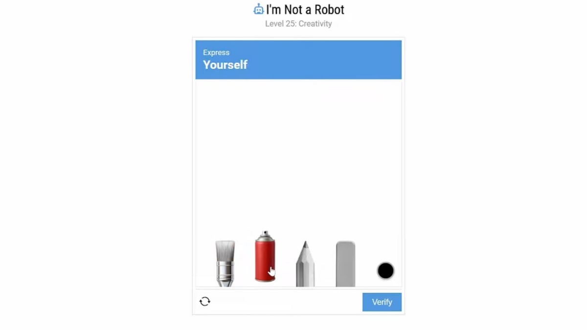 Básicamente debe usar todo lo que vea para superar el nivel 25 No soy un robot. Debe usar todas las herramientas y tres o más colores. Las herramientas a su disposición son: